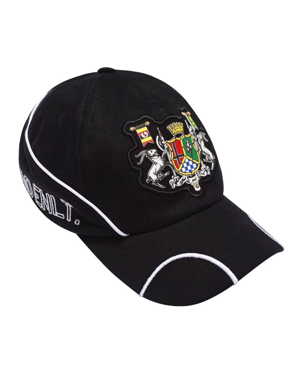 Boné confeccionado em tecido 100% Algodão, modelo baseball-cap mais raso e estampa em aplique emborrachado e sublimado. Recortes e bordados em linha branca. Parte traseira com fecho e regulador metálico.