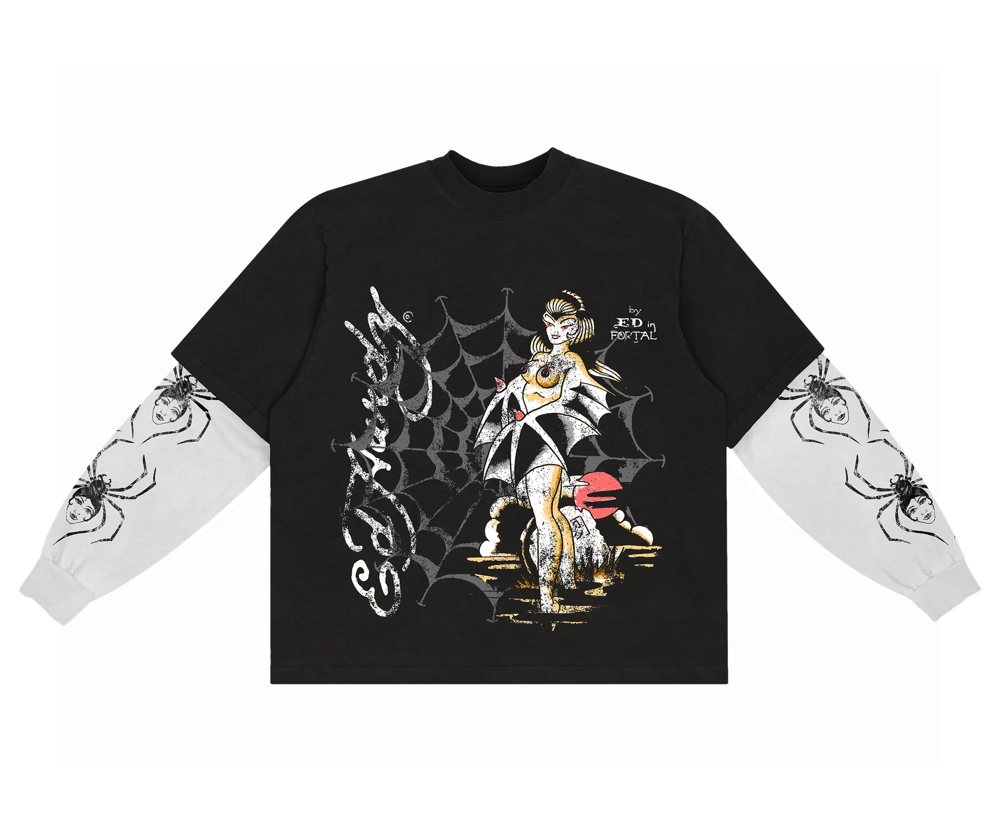 Camiseta Manga Longa Sobreposta da collab oficial entre Ed Hardy x Matuê.