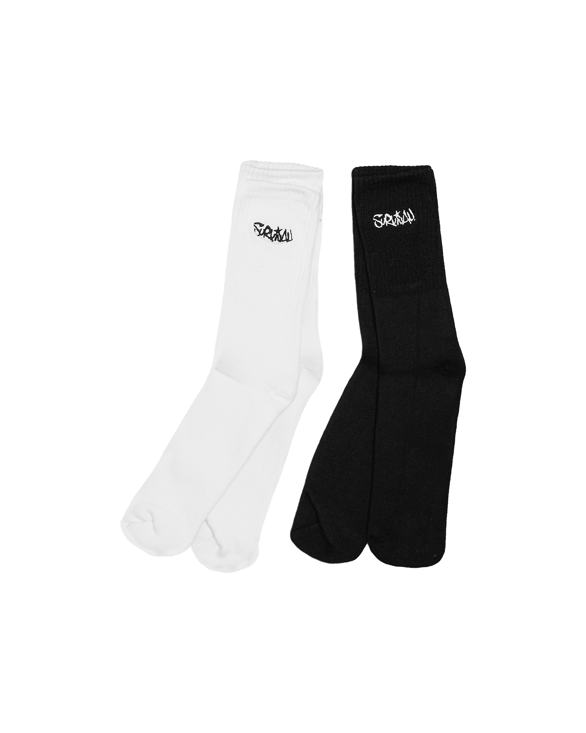 PACKS DE MEIAS BRANCA E PRETA COM GRÁFICO SPRAY LOGO EM PRETO NA CANELA
