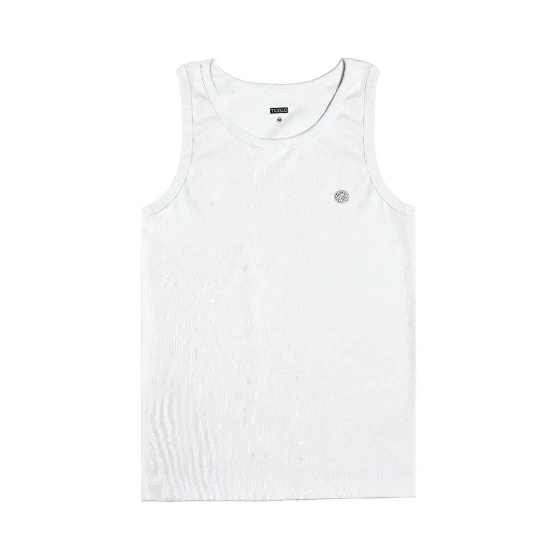 Fitted ribbed T-shirt with heat-sealed Tijolo patch applied on the left side