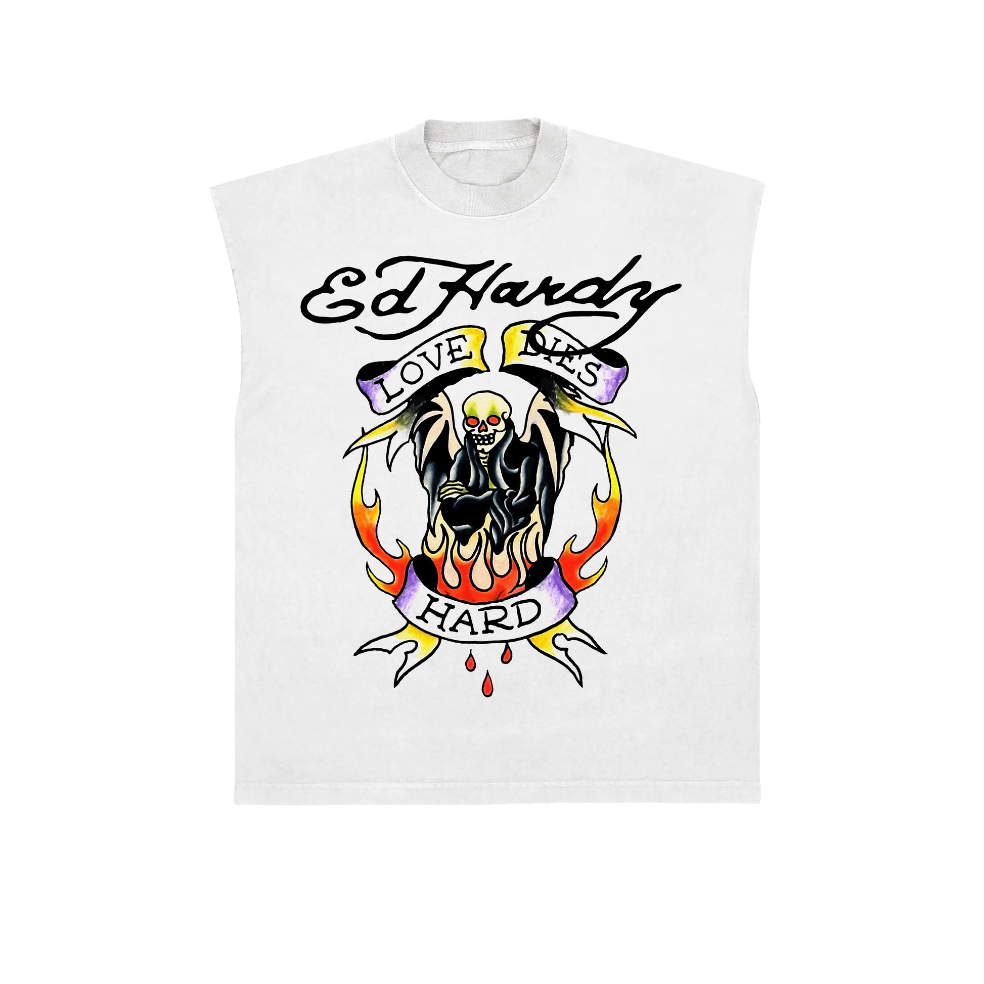 Sleeveless Tee Ed Hardy "Love Dies Hard" White